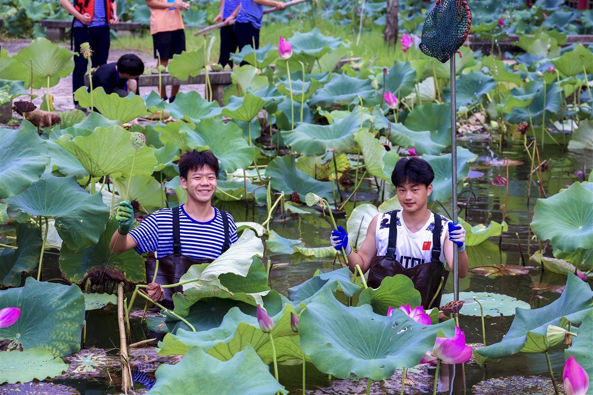 来自宁夏的建筑工程学院2023级学生白雅蓉,是第一次吃到莲蓬,除了开心之外,她也收获了更多的感悟:“看到大家不怕泥泞去采摘莲蓬的劲头,让我感受到团队协作的力量,也懂得在未来人生道路上,要想收获果实,就必须付出劳动。”