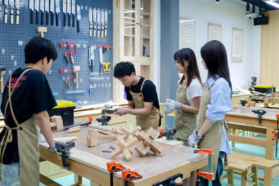 据悉,自木工实训室成立以来,木工课便火爆异常,除日常教学外,实训室积极拓展社会服务功能,开展亲子研学、木艺体验、非遗文化工作坊等活动,吸引校内外师生及公众参与。通过“沉浸式”木工体验,不仅普及传统工艺知识,更推动工匠精神在新时代的传承与发展。