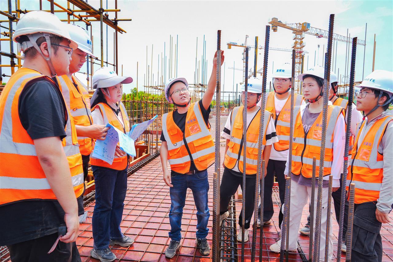 大三学生黄堰冬说:“我主要参与项目管理、学习施工工艺,课本上晦涩难懂的知识,在现场变得具象化了。阮老师经常带着书上工地,带领我们在工地上翻阅各类规范、图集,让我认识到‘规范是准绳’。”