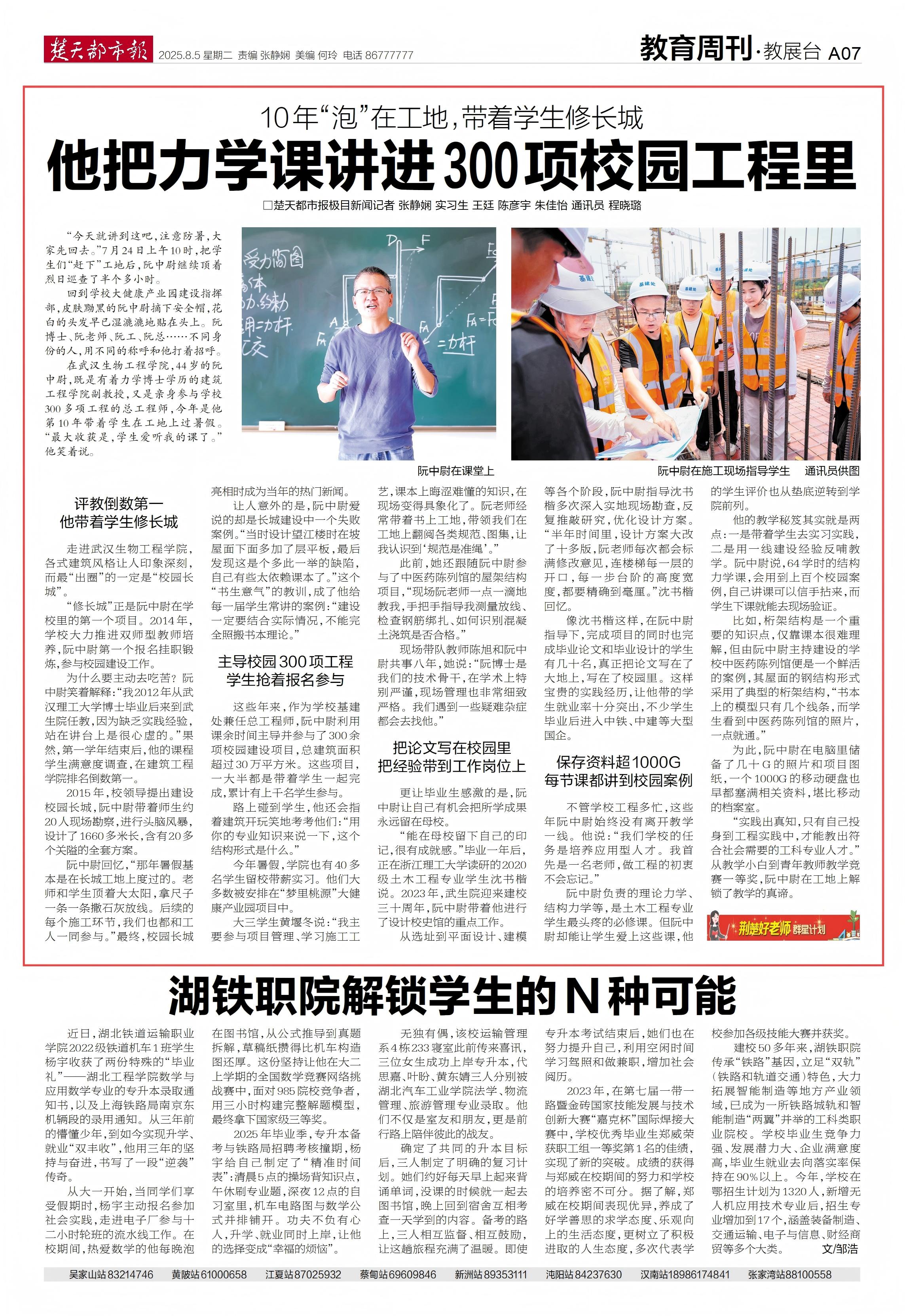 楚天都市报:10年“泡”在工地,带着学生修长城 他把力学课讲进300项校园工程里