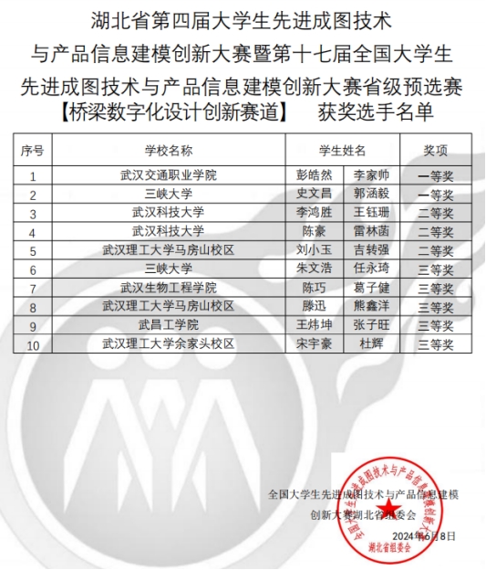 本网讯(通讯员 郑自海)6月8日,湖北省第四届大学生先进成图技术与产品信息建模创新大赛在武汉大学圆满落幕。