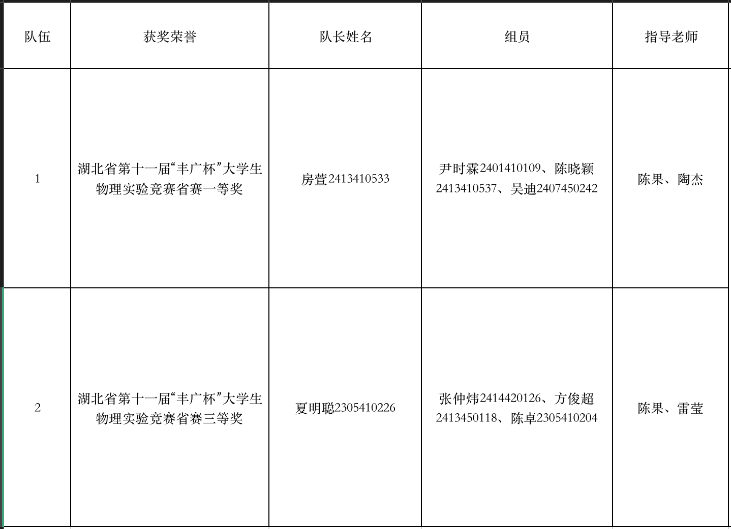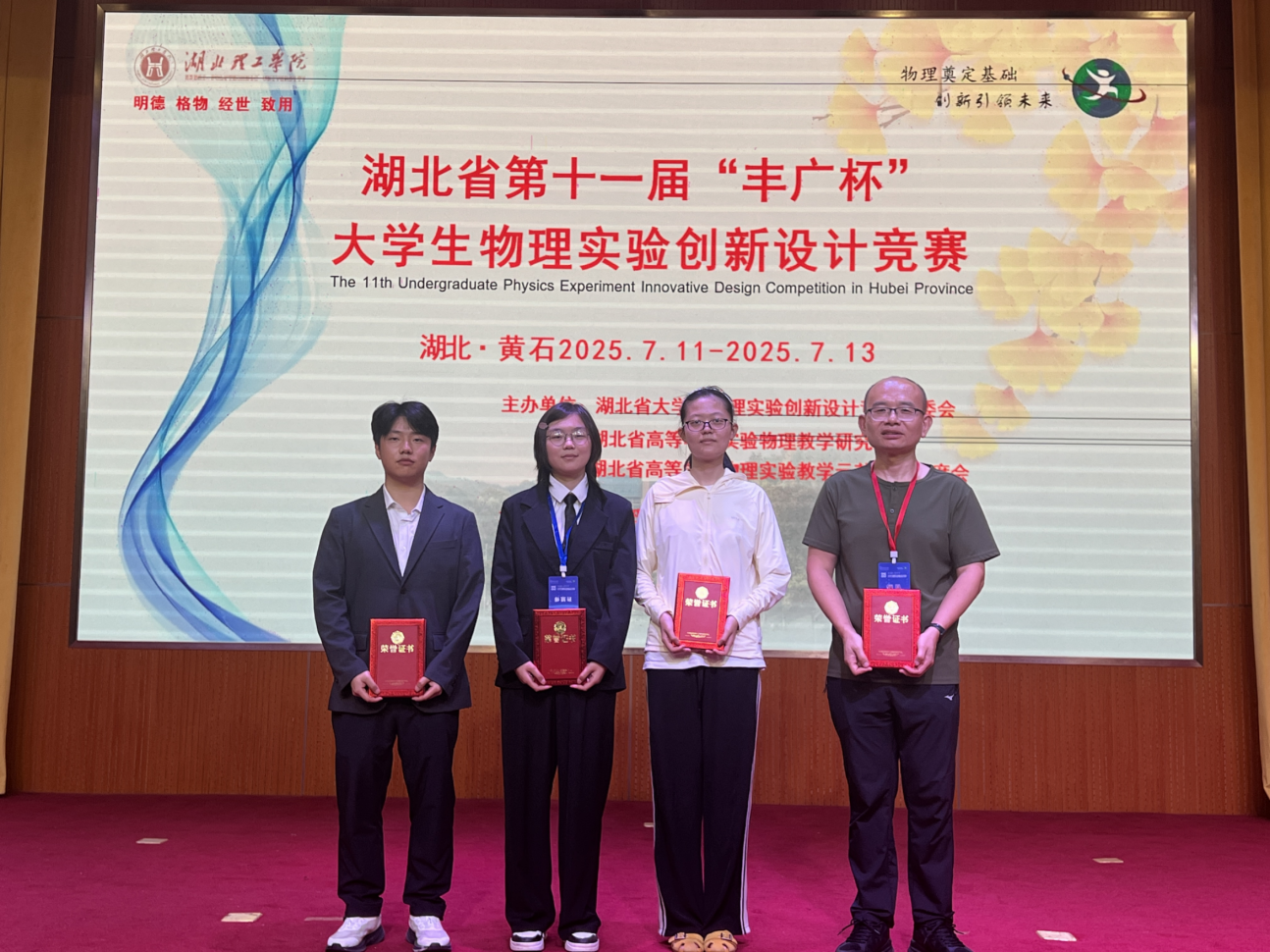 本网讯(通讯员 筑美)7月13日,第十一届全国大学生物理实验竞赛(创新)组委会公布湖北省省赛获奖名单。我校机械与电子工程学院、生命科学与技术学院,建筑工程学院等5个学院联合组建的2支参赛队伍表现优异,分获一等奖和三等奖,展现了我校在物理实验教学和创新人才培养方面的突出成果。