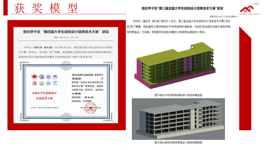 实现产学双收。此项目依托建筑工程学院优越的教学与人力资源,学生不仅可以利用空余时间学习到专业相关的知识同时还能完成任务得到相应的生活补助。目前学生团队已对BIM-PKPM软件熟练运用,并在全国大学生结构设计比赛中获得二等奖以及三等奖。在项目期间不只是单纯的提高同学们自己的专业知识能力,更是要在实践过程中让同学们领悟作为建筑行业的一员必须具备的专业素养。