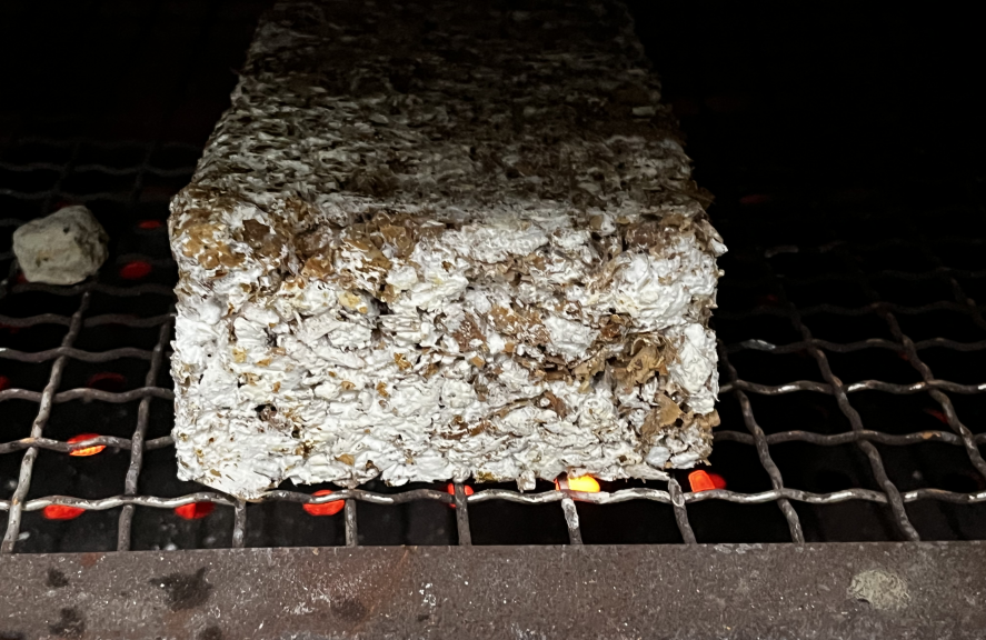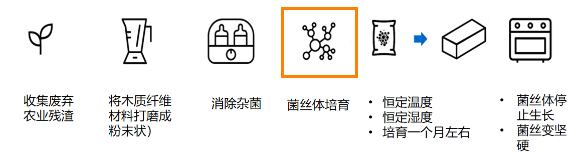我们的项目产品为“蘑菇砖”,这是通俗的叫法,蘑菇砖的学名是菌丝体材料。在蘑菇的可见表面以下,有着长长的根,称为菌丝体。这些菌丝是极细的白色丝状物,向四周发展,形成一个快速生长的复杂网络。将真菌植入一个合适的基质时,菌丝就会像胶水一样,将基质黏合起来,使其变坚实。合适的基质可以由锯末、磨木、秸秆、各种农作物残渣或其他类似的材料组成。而这些材料通常是会被废弃的,从某种程度上,菌丝体材料也在帮助我们更好的处理农业废料。