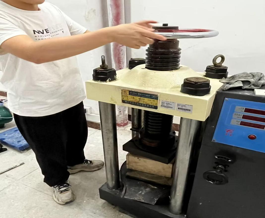 项目成员测试蘑菇砖抗压程度