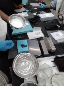图2 课堂实拍(切割泡沫,粘贴底模)