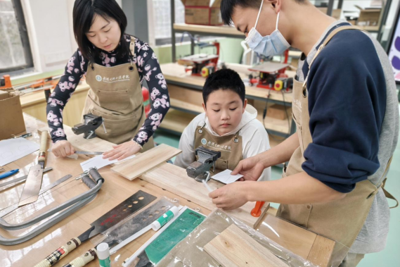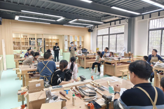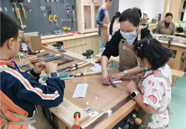 本网讯(通讯员 叶崇政 匡嘉文)10月27日下午,由建筑工程学院主办、艺术设计学院协办、校工会指导的教职工木工亲子活动在17#108木工实训室举行,武汉市新洲区钱学森学校学生代表和学生家长报名参加本次活动。