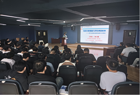 在本场报告会上,贺小黑副教授以高度凝练而又富有研究性的术语讲解了地调相关专业问题,从地质灾害调查的类型、地质调查的基本过程等内容进行了论述,涉及到许多关于地质灾害研究的重要科研问题与新技术方法,讲解的内容是深入浅出,为在座师生的地质调查基础知识奠定基础,也为师生从事相关工作奠定了良好的研究基础。