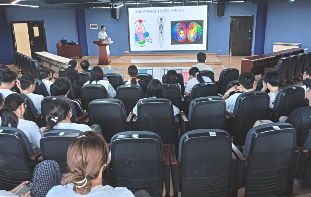 报告伊始,崇加军副研究员便从人类共同生活的地球进行引入,从地球的内部结构自然过渡到地球的内力作用——地震,并就地震波的产生、传播以及基本特征进行了介绍,同时引出了当下较为前沿的人工面波勘探技术,并就其在信号激发与采集、频散提取、反演成像等相关前沿内容逐一进行了细致而又形象地讲解,在座师生反响较好。