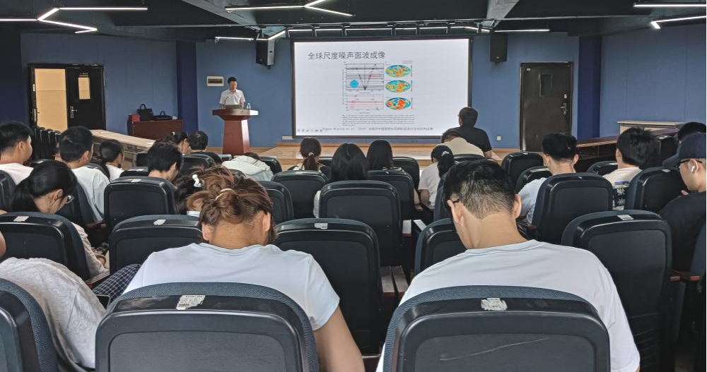 随后,崇加军副研究员以富有学术性的话语讲述了当前在地震学领域所探索的前沿课题——噪声面波成像技术,并十分细致地讲解了区域噪声面波成像技术在大陆尺度乃至全球尺度的成像机理与应用范围,也进一步拓展了背景噪声成像技术用于提取体波信号的关键性手段与研究痛点。