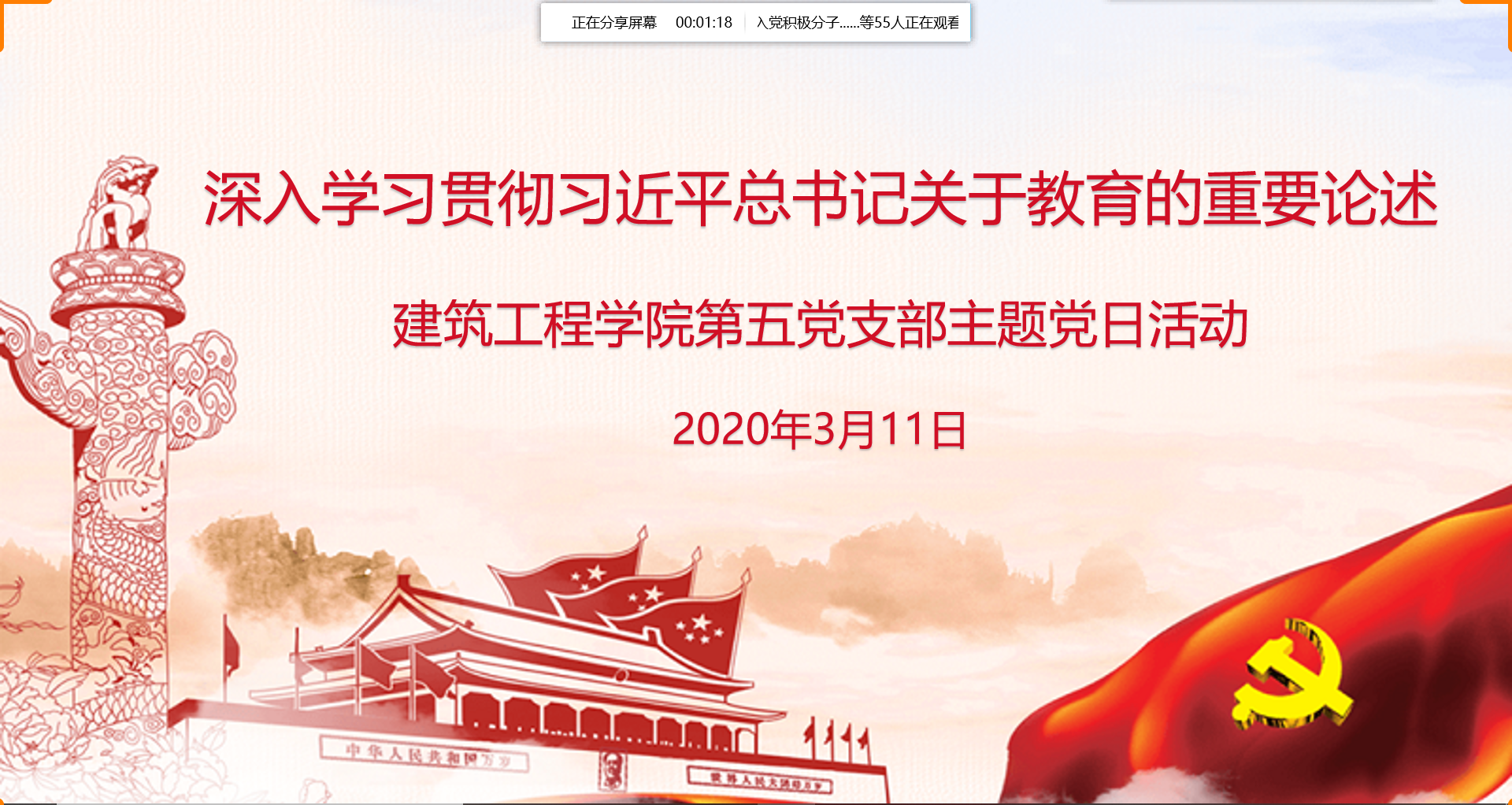 本网讯(通讯员 陈少薇)为了深入学习贯彻习近平总书记关于教育的重要论述,加快推进教育现代化。3月11日中午11:00建筑工程学院第五党支部召开了“深入贯彻习近平总书记关于教育的重要论述”主题党日活动。