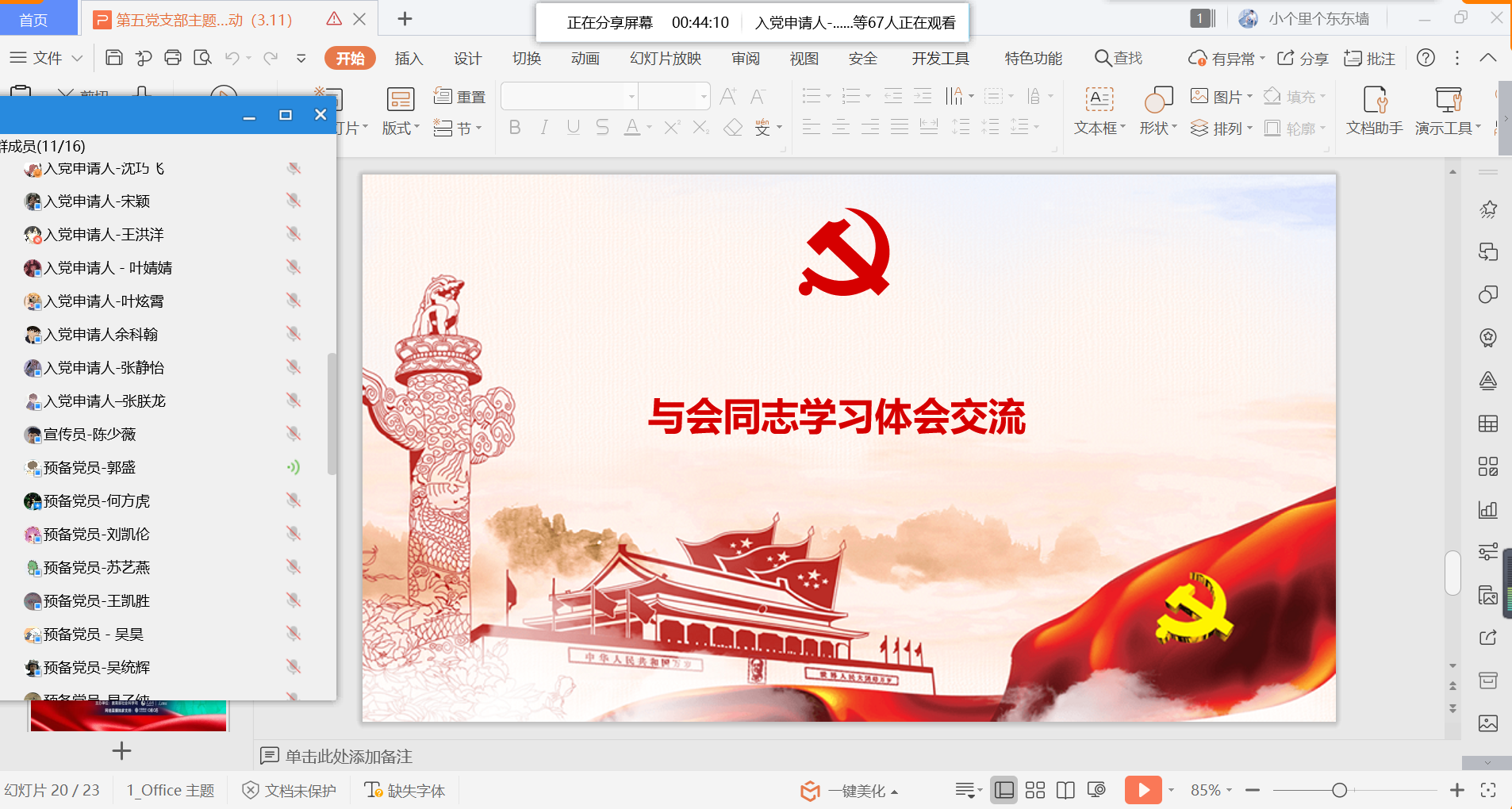 会议期间,成员们对于3月9日《与全国大学生同上一堂疫情防控思政大课》的心得体会进行交流讨论。成员们积极在线发表讨论,共论新时代大学生的青春担当、时代责任。