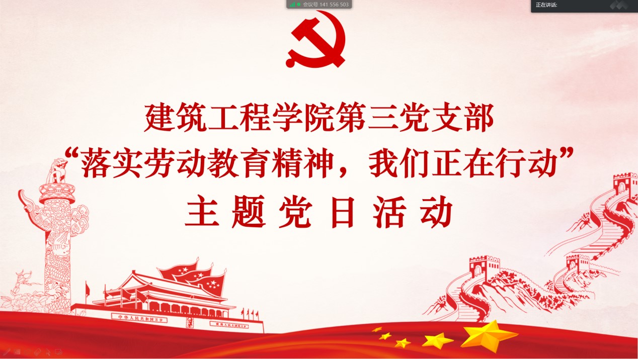 本网讯(通讯员 后晓易)近日,建筑工程学院第三党支部以腾讯会议组织召开了“落实劳动教育精神,我们正在行动”主题党日活动。