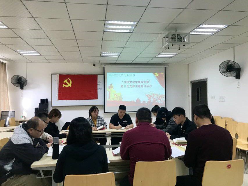 本网讯(通讯员 陈苗苗)10月30日下午14.00建筑工程学院党员工作站第三党支部于建筑大楼103召开了支部主题党日,会议主要围绕“对照党章党规找差距”这一主题进行开展,支部全体在校党员、预备党员参会,由支部书记吴凯老师主持。
