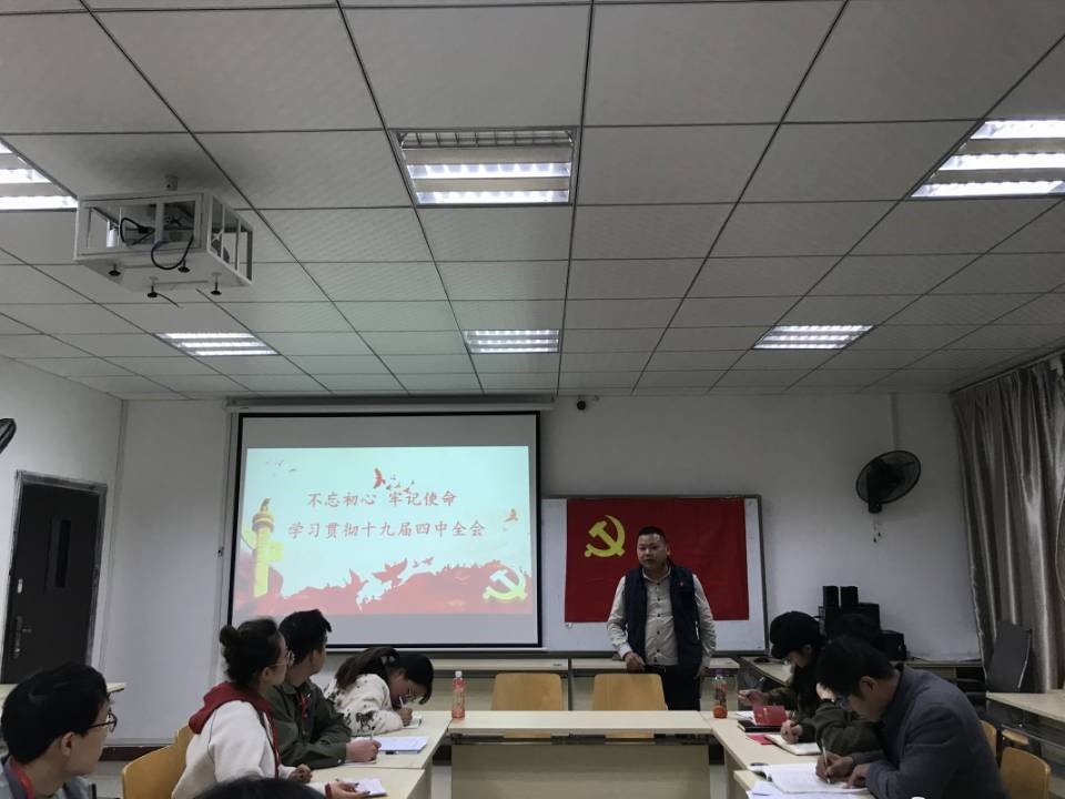 本网讯(通讯员 陈苗苗)11月19日下午12.00-14.00,建筑工程学院党员工作站第三党支部于建筑大楼104,召开了学习贯彻十九届四中全会精神的党课,会议主要是由在校党员和预备党员学习十九届四中全会精神,由第三支部书记吴凯主持。