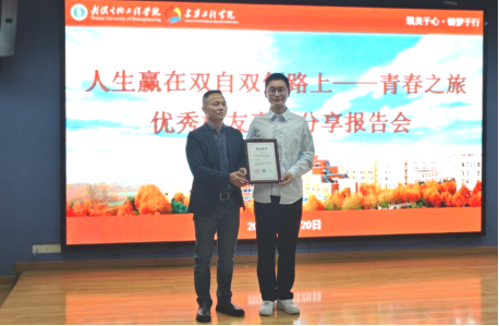 讲座结束时,党总支书记王龙总结讲话并为王凯颁发纪念证书。他感谢王凯同学的精彩分享,强调各位同学要立足专业课程,做好生涯规划,让自己的大学生活充实、丰富起来,在专业发展的基础上不断拓展自身,促进德智体美劳全面发展,一步一个脚印地实现人生目标。