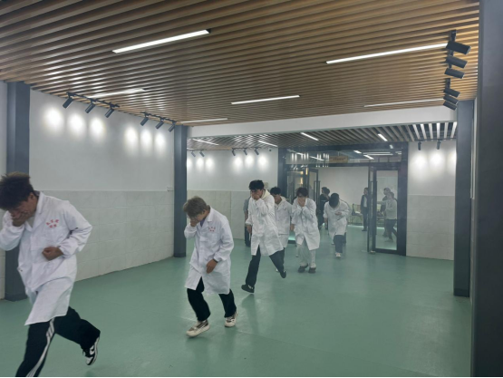 本次实验室安全应急演练主要分为两个环节。第一个环节为实验室安全应急逃生。通过模拟真实的突发事件,如机械伤害、火灾、触电等场景,正确应对紧急情况,确保在真正的危机来临时从容不迫,保护自身和他人的安全。在这个环节中,学生在实验室老师的带领下按照正确的逃生通道迅速、有序离开实验室。