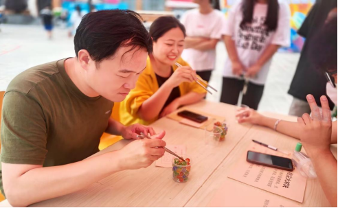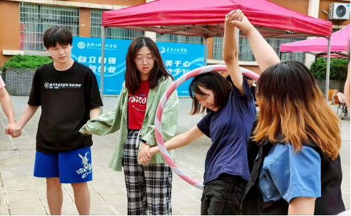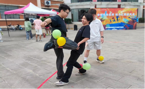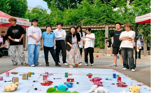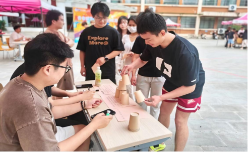 本届活动的亮点——"嘉年华趣味集市"。集市设有投壶挑战、一圈到底等六大趣味游戏,参与者可通过积分兑换套圈机会赢取奖品;同时还设置了木艺体验、心理解压等特色区域,以及乡村振兴暑期社会实践团队招募活动。
