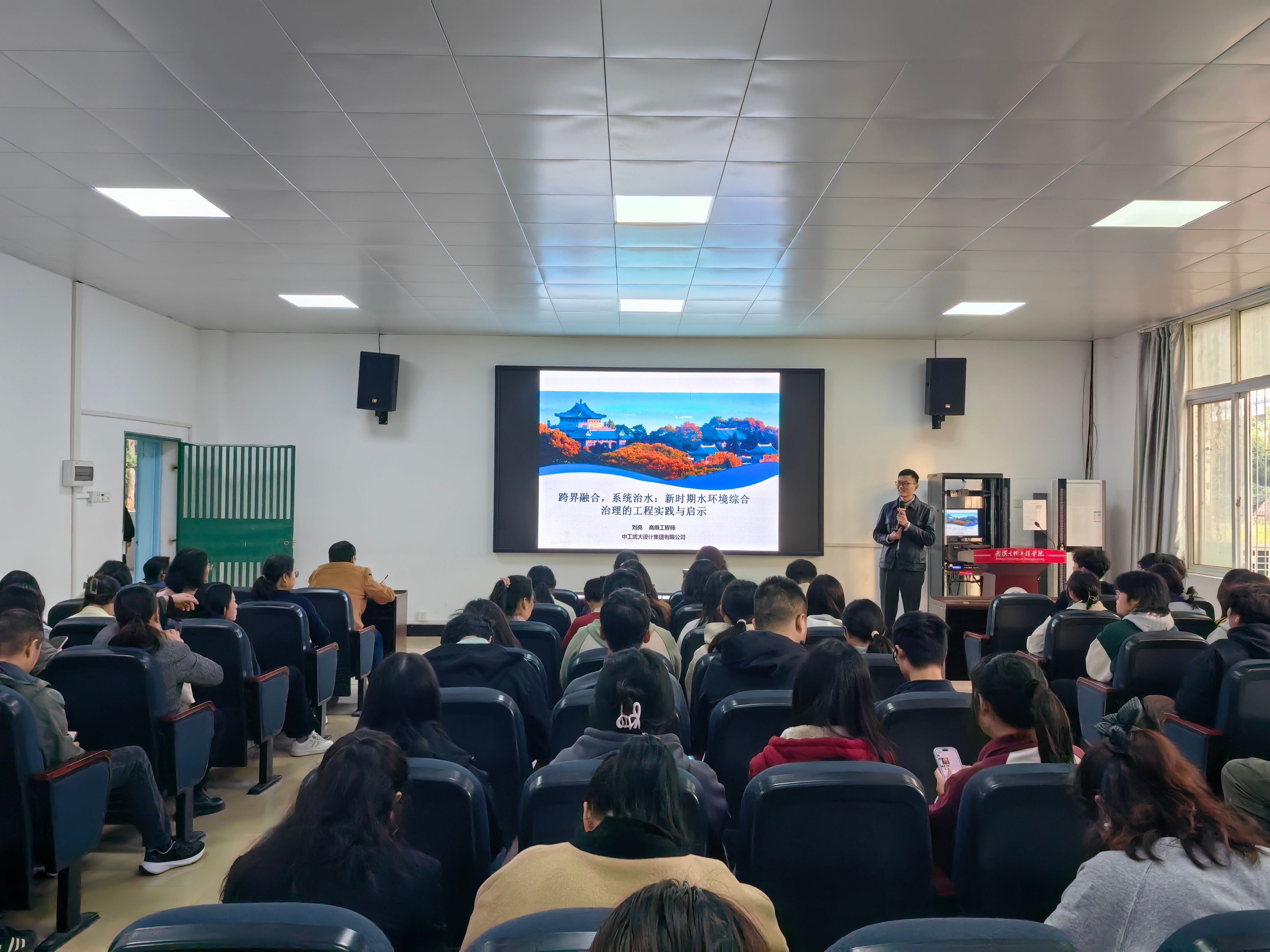 本网讯(通讯员 卢金珍 周成芳)11月5日下午,化学与环境工程学院·食品科技学院于一号教学楼南1102报告厅顺利举办了第四十四期“遇见大咖”系列学术咖啡厅讲座。本期讲座特别邀请中工武大设计集团有限公司水务设计院水环境室主任、高级工程师刘亮作为主讲嘉宾,以“跨界融合,系统治水:新时期水环境综合治理的工程实践与启示”为主题,为现场一百余名师生作了一场基于工程实践、聚焦学科交叉的精彩报告。讲座由学院副院长卢金珍主持。