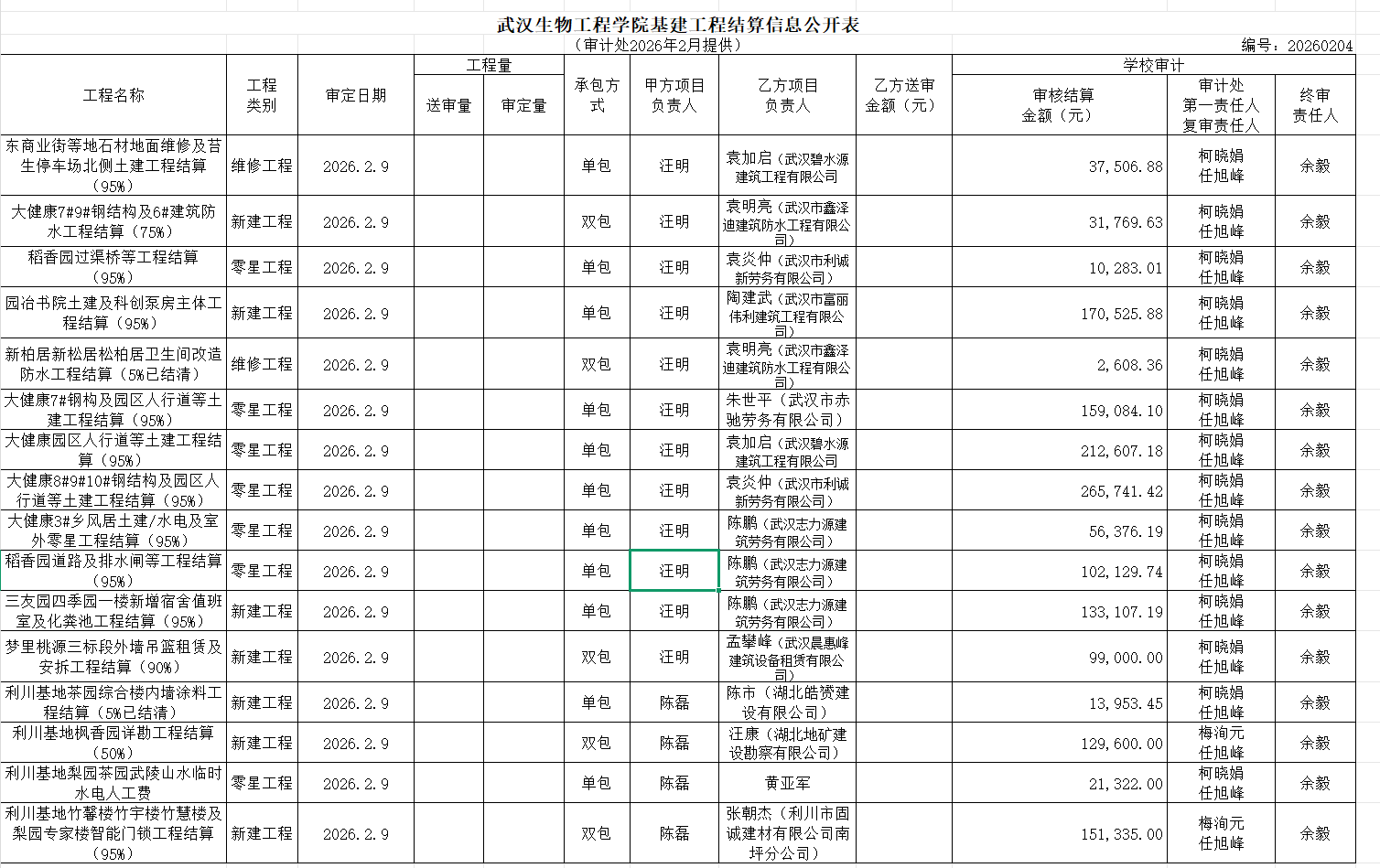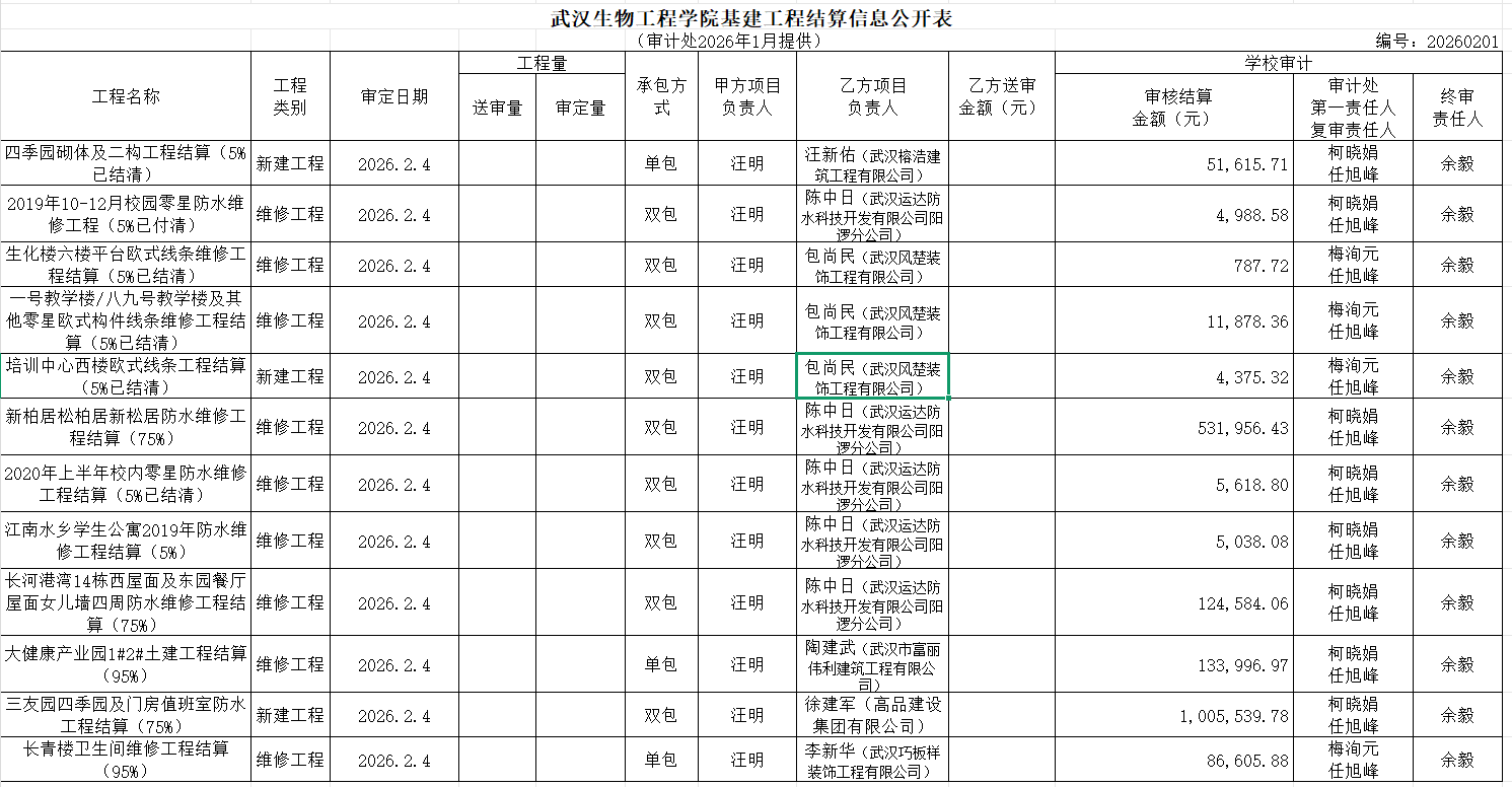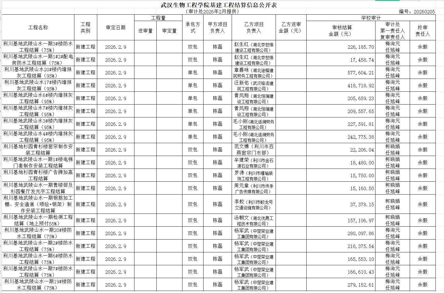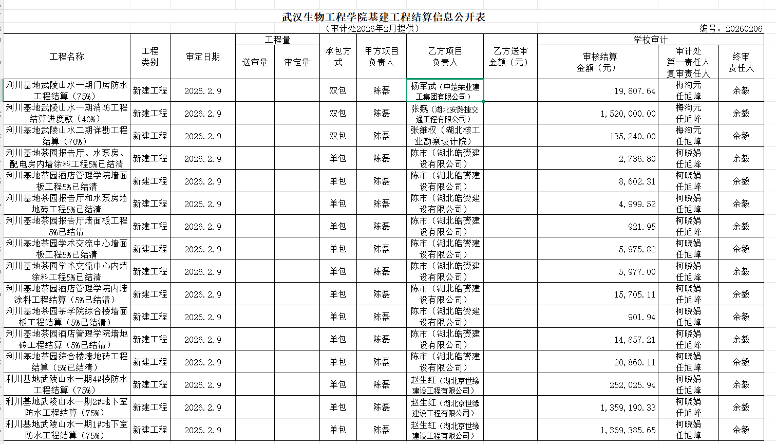 工程结算审计公示(2026年2月)