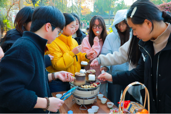 师生们围炉煮茶,享受冬日暖阳