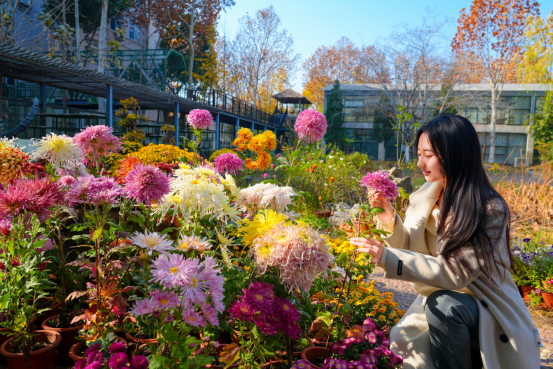师生沉浸在菊香园林中
